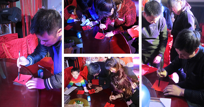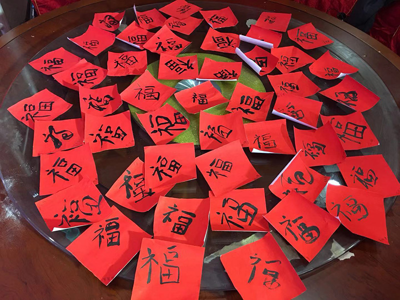 集福送祝福:每一位員工都將“?!弊謱懴拢瑵M滿一桌子的祝福,送個自己,送個大家。